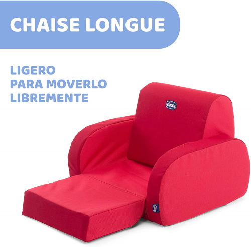 Twist Sillón Infantil Convertible en Chaise Longue y Butaca - Transformable – Puff Niños a Partir de 12 Meses, Sofá Infantil con 3 Configuraciones, Color Rojo (Red), Silla Cómoda y Ligera - Chicco