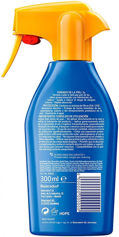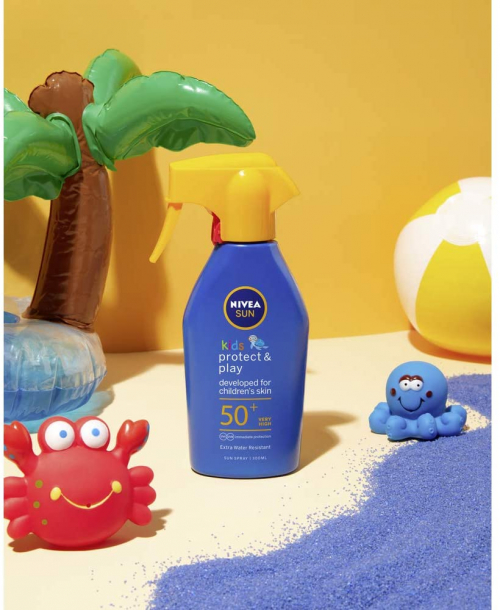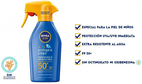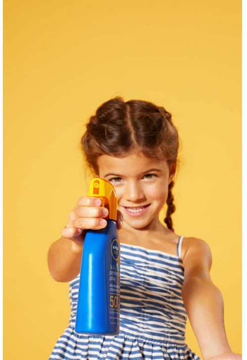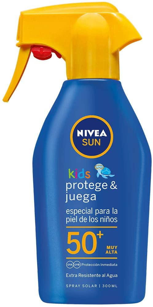 NIVEA SUN Spray Solar Niños Protege & Juega FP50+ (1 x 300 ml) - protección solar muy alta 300 ml (Paquete de 1) Sun Kids 50+, protector solar infantil, pistola spray solar hidratante resistente al agua - Nivea Sun