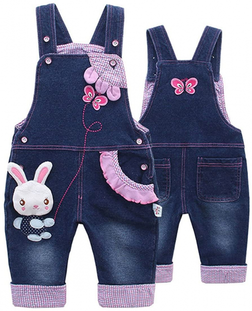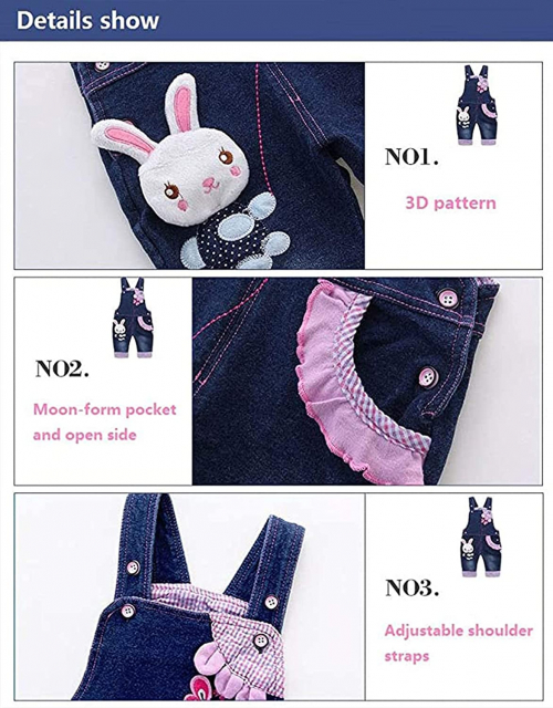 Overol de mezclilla para bebé niña - conjunto de conejito lindo 3D de mezclilla para niños pequeños Azul-1301 3-4 años - KIDSCOOL SPACE