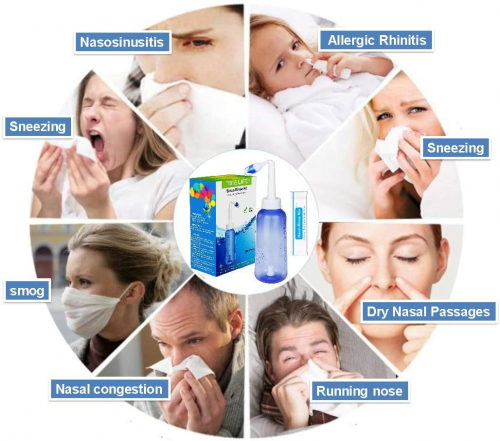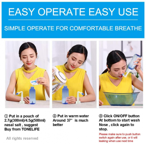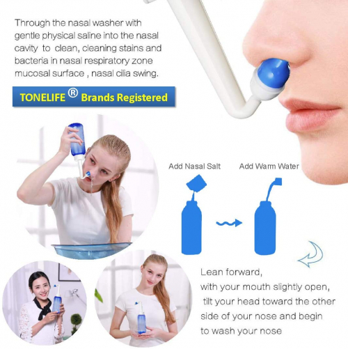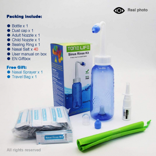 Set de Lavado Nasal+40x Sal de Enjuague Nasal+Pulverizador Nasal+2 Boquilla para Adultos y niños-Tampen Hygiene-Ducha Nasal · Limpieza de Nariz-Aspirador de Nariz-Kit de Lavado y Irrigación Nasal - TONELIFE