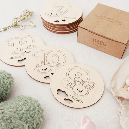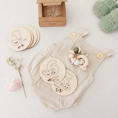 12 Tarjetas de etapas del bebé • Placas decorativas para fotos de cumple mes de bebé - un regalo original para la mujer embarazada y el recién nacido - nagu
