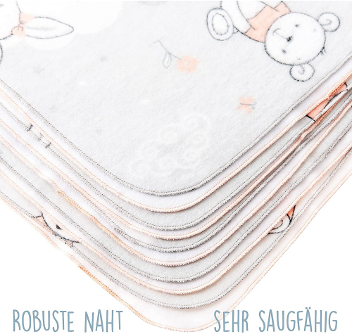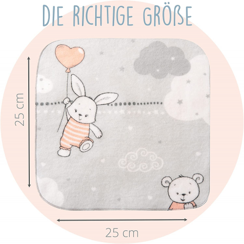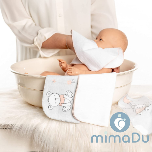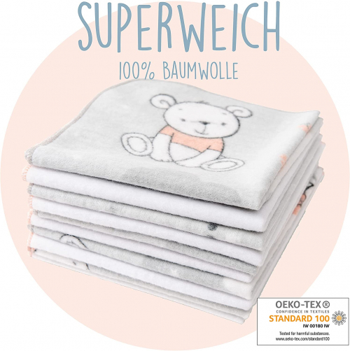 Juego de 10 toallitas de franela para bebé - muselina - 100% algodón - pañitos para recién nacido, Conejitos, para baño y cambiador. Gris, toallitas faciales, gasas, 25x25 cm, Blanco, Rosa, paños - MimaDu