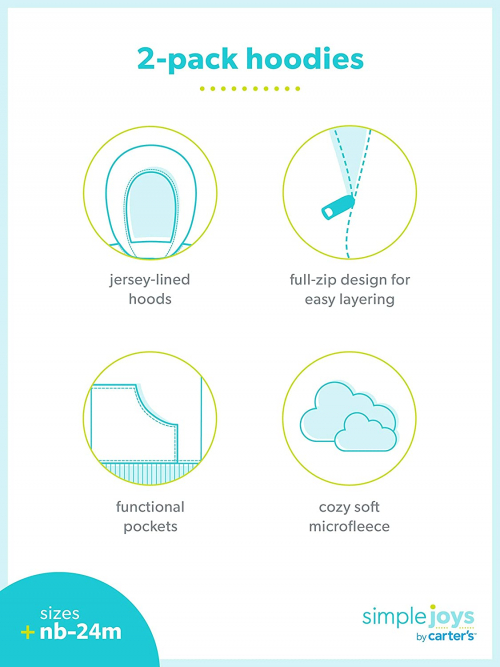 2-Pack Fleece Full Zip Hoodies Bebé-Ni�..