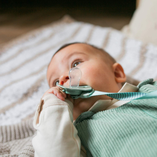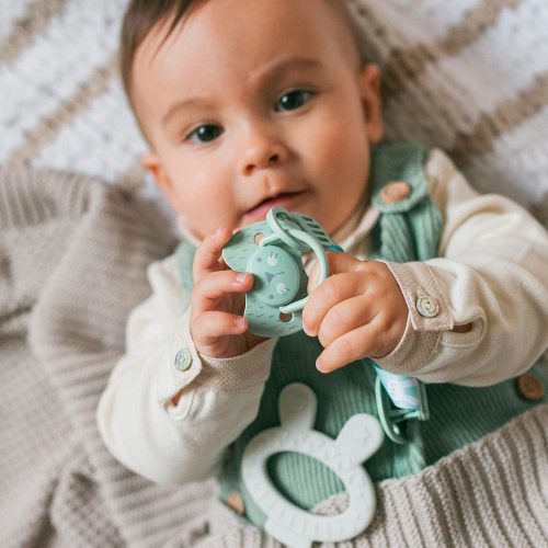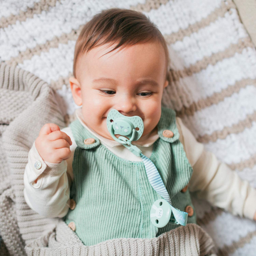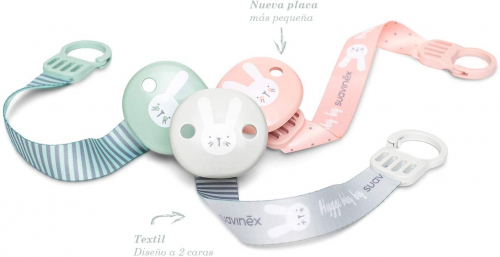 Suavinex - Broche pinza con cinta de chupetes para bebés +0 meses. Broche Pinza Redondo. Con nueva placa más pequeña. 0% BPA. Color verde. Verde Cinta - SUAVINEX