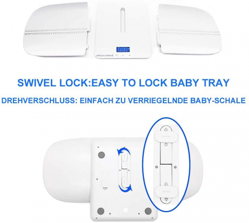 Balanza Bebe - Peso Bebe Digital, Báscula para Bebés con Función de Retención, Báscula para Niños Pequeños Multifunción, Báscula para Mascotas, Peso y Riel de Altura 1 Unidad (Paquete de 1), Luz de Fondo Azul - MOMMED