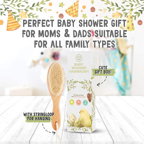 Cepillo de pelo para bebé recién nacido - Madera natural con cerdas suaves de cabra para la costra láctea - Kit de cuidado de cepillo de pelo para el cuero cabelludo perfecto para bebés - niños pequeño - keababies