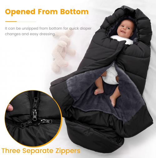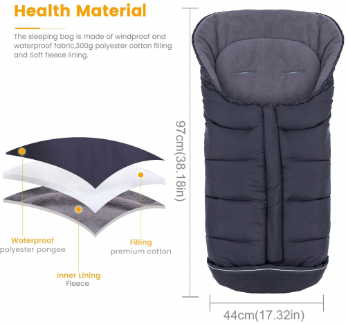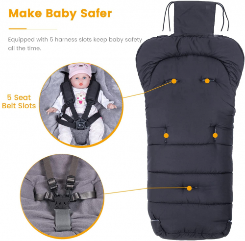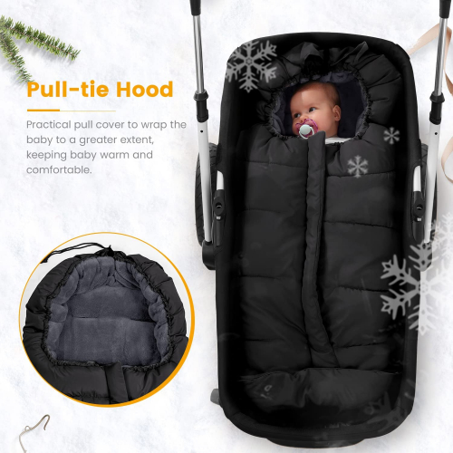 Saco Silla Paseo Universal,Inviern Sacos Carrito Bebe,Saco Capazo Bebe Impermeable a Pruebade Viento Forro de vellón polar (negro) - Orzbow