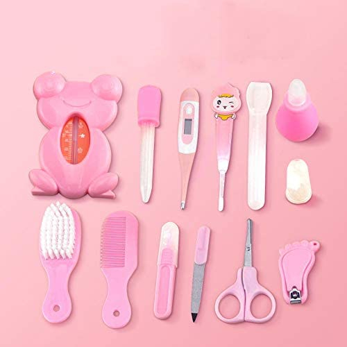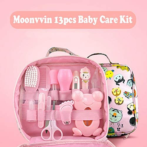 Kit de cuidado de bebé 13pcs / set Conjunto de aseo para recién nacidos Accesorios esenciales para el cuidado de la salud para viajes en el hogar Uso con bolsa de transporte (Rosa) - Moonvvin
