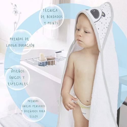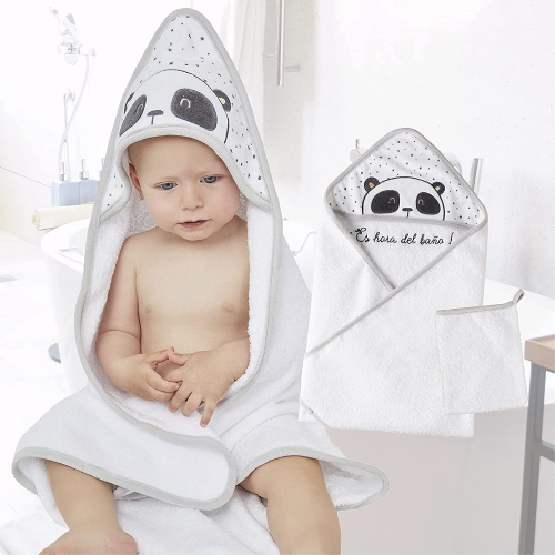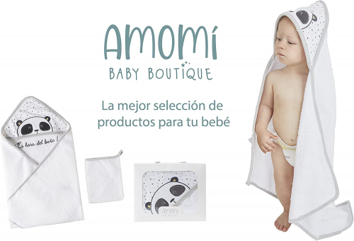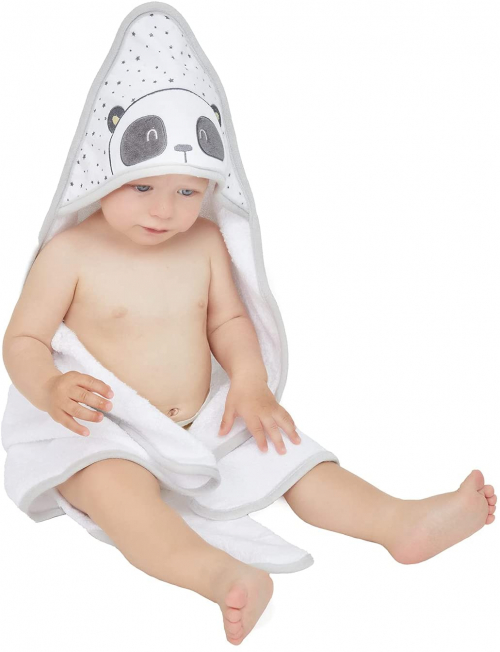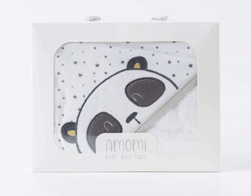 Amomí Toallas de Baño para Bebe Toallas Bebe con Capucha - Niños y Niñas (Blanco, Extra Absorbente, Diseño de Oso Panda, 75_x_75cm) 101005 75_x_75cm, 75x 75cm, Grande, Suave y Confortable, con 1 Toallita, 100% Algodón - AMOM