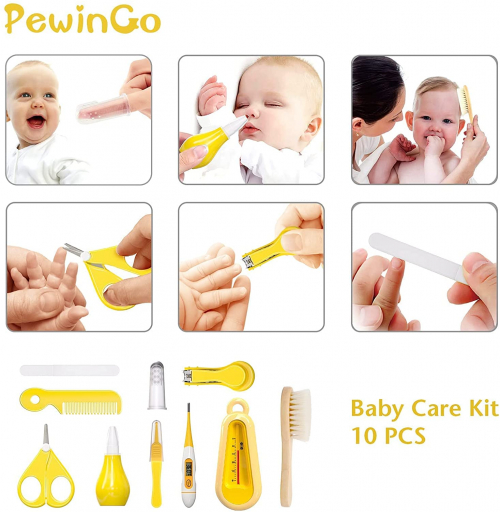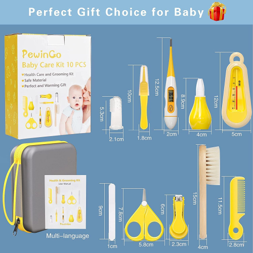 Set para Cuidado del Bebé - 10 Piezas Kit de Aseo para Bebés,Cortador de Uñas Cepillo de Dientes de - Fácil de Transportar y Adecuado para Viajar y el Uso Diario - Amarillo 18.7 x 15.5 x 6.3 cm - PewinGo
