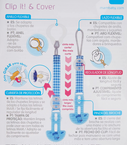 OnlyBP® - Set 6 Chupetero de clip para Bebé - Cadena de Chupetes para niños y niñas, Protege a tu bebe - OnlyBP