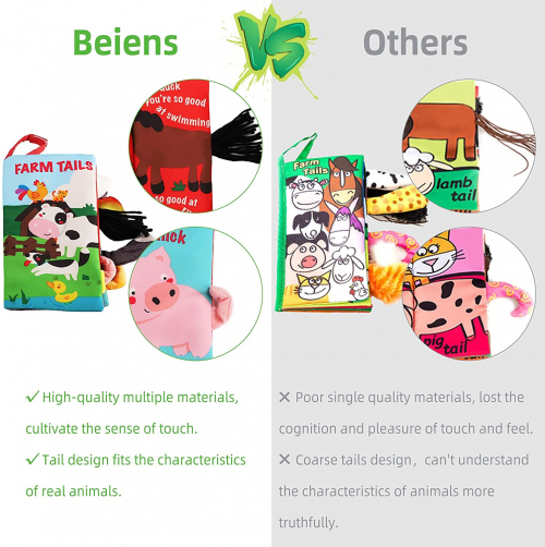 Libros blandos para bebés (sin BPA), Libros interactivos Beiens, Diseño de animalitos de la granja