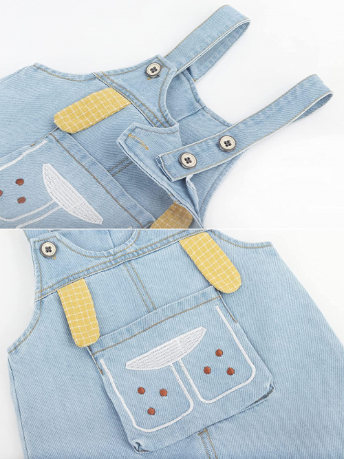 Bebés Infante Niños Niñas Pantalones de Peto Básicos Casual Algodón Jeans Pantalones con Tirante - Liso Clásico Azul Jeans Talla 80/86/92/98/104 92 Azul - Patrón de Perrito - Camilife