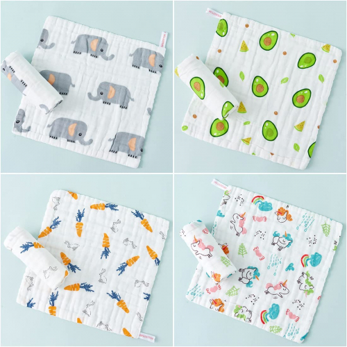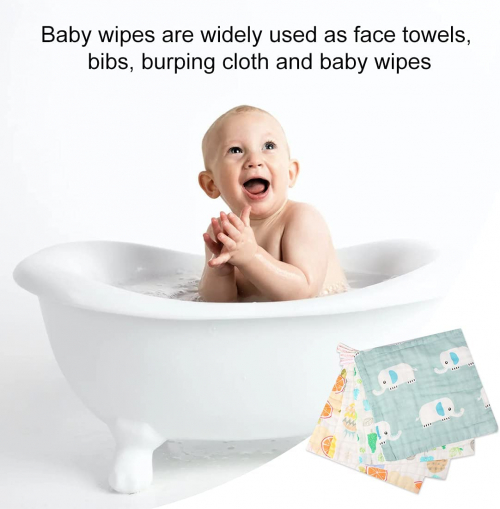 Tougod 4 + 10 Toallas De Muselina De Algodón Orgánico Natural Para Pieles Sensibles; Viene Con 10 Ganchos,Patrón aleatorio - Teegxddy
