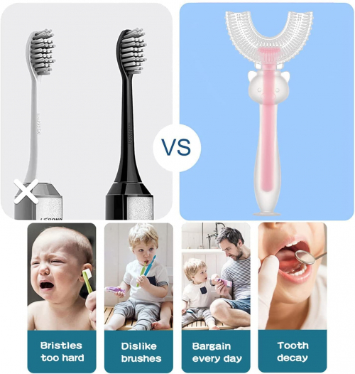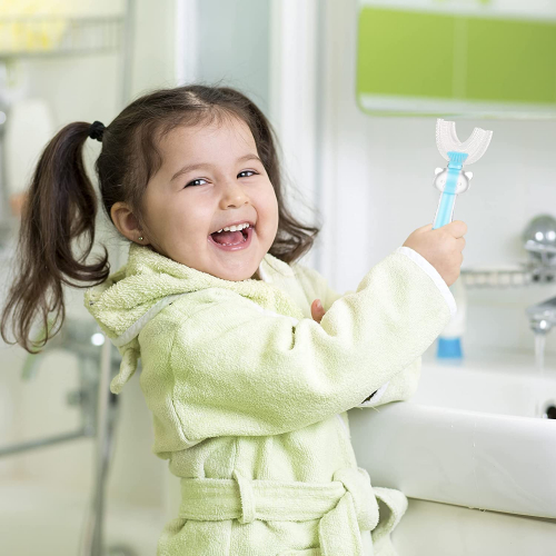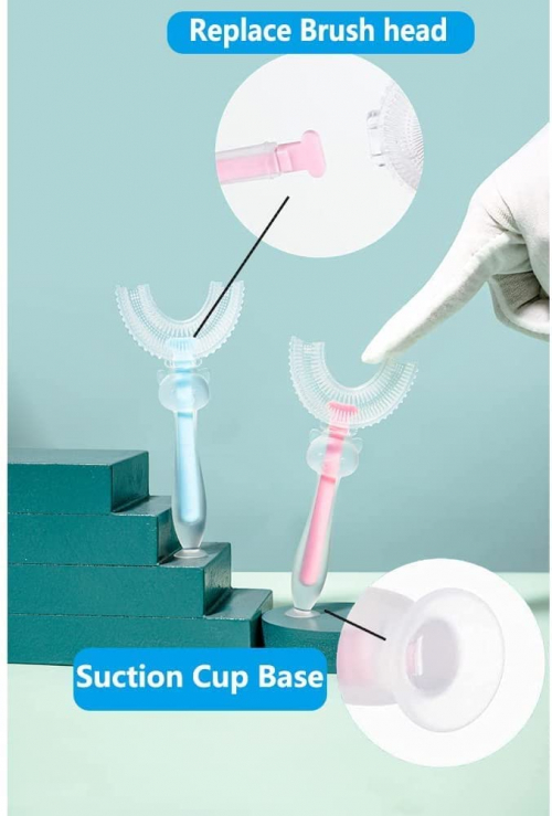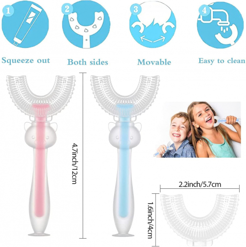 Cepillo de Dientes para Bebe en Forma de U - Cepillo de dientes de boca entera desmontable, Diseño de Limpieza de Dientes de 360 ° Juego de 4 piezas (para niños de 6 a 12 años) - BINOTHINK