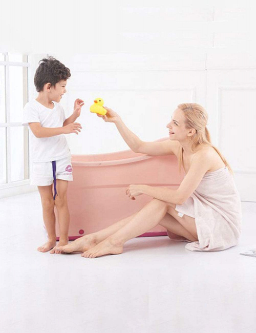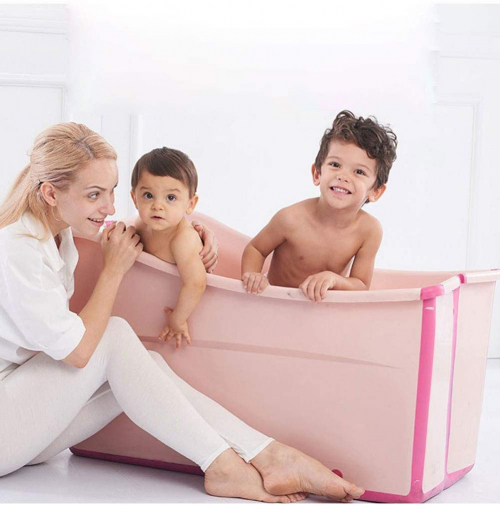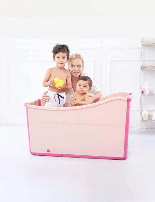 Gweat Kids Portable Bañera Plegable Piscina Grande Independiente Bañera de Esquina Balde de baño para Adultos/Adultos Mayores Aumento - Largo Tiempo de Aislamiento con Cubierta (Rosa/Azul) Pink - Gweat Bathtub