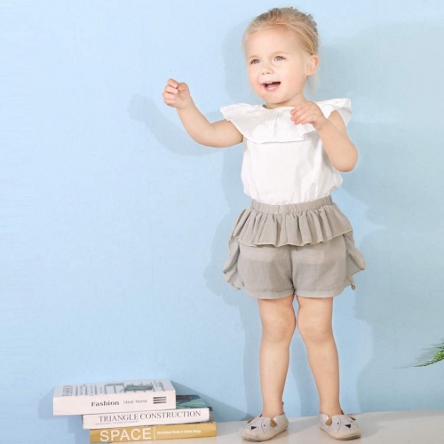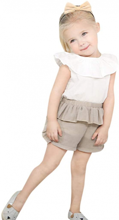 Ropa Bebe Niña Verano Fossen Recién Nacido 6 Meses a 3 Años Camisetas sin Mangas con Volantes + Pantalones Cortos Conjuntos/2pc Blanco 18-24 meses - Fossen Bebe Ropa