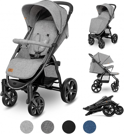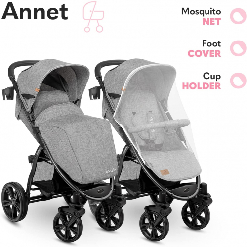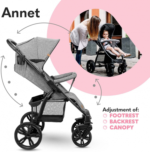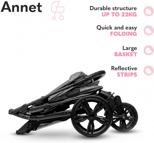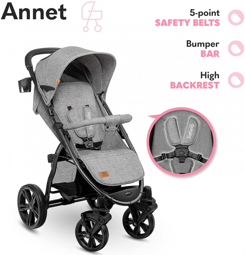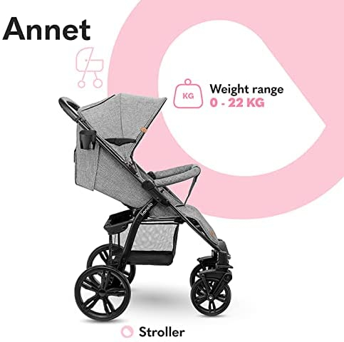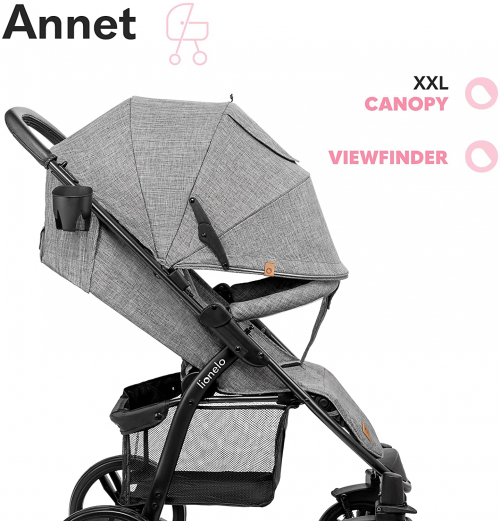 LIONELO Annet Silla de Pase Para niños hasta 22 kg 0-48M ajuste del respaldo hasta posición horizontal Capucha XXL Plegable fácil con ventana Mosquitera Concrete Standard - lionelo