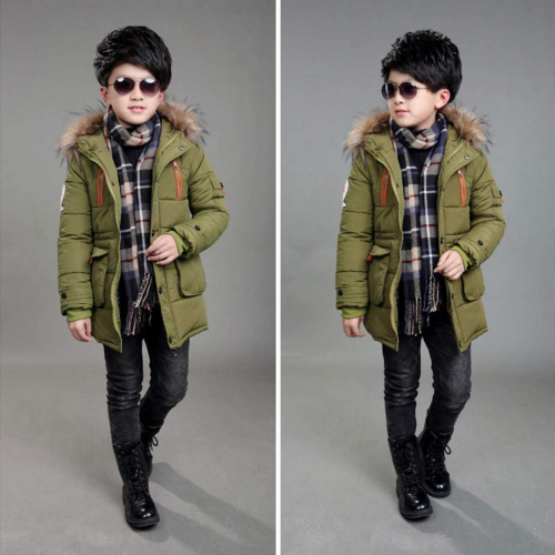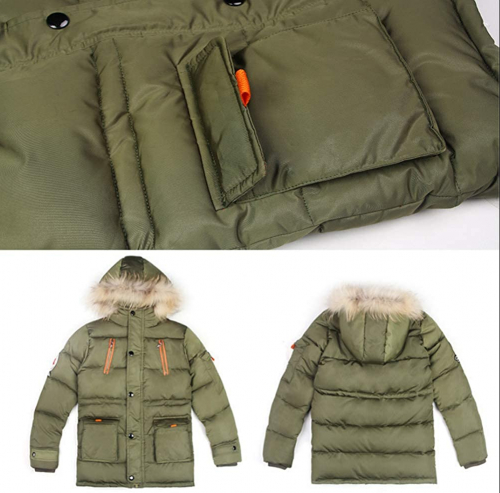 Niños Chaqueta de Invierno con 2 Cremalleras Abrigo Acolchado con Capucha de Pelo Verde 11 años - SXSHUN