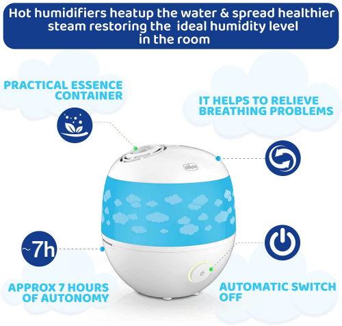 Jané Humidificador Ultrasónico con Luz - 2 Velocidades, Táctil, Apto para Esencias, Salida de Vapor Orientable - Jan