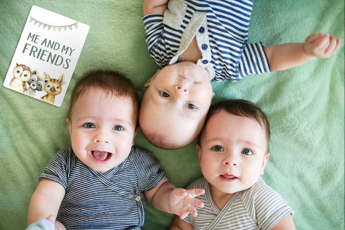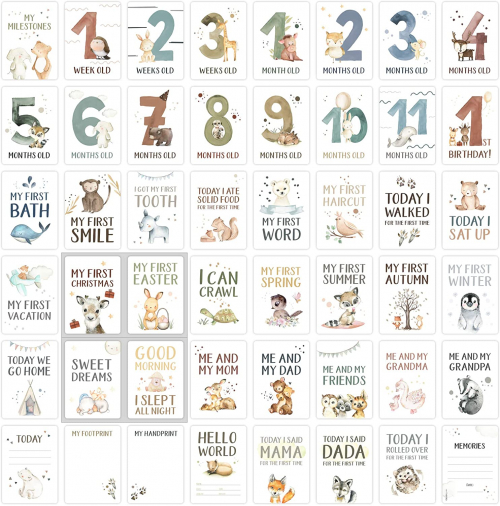 Juego de 45 tarjetas Milestone para bebés y niñas + caja de regalo ideal para cumpleaños - blanco, Navidad o baby shower (animales, inglés) Tarjetas de hitos en inglés - Olgs