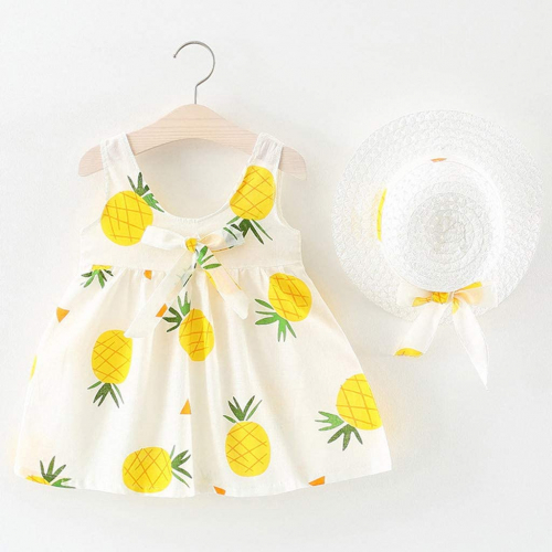 Fossen Ropa Bebe Niña Verano - Conjuntos de Dos Piezas Princesa Vestido sin Mangas con Estampado de Piña + Sombrero de Paja para Recien Nacido 0 a 24 Meses 0-6 meses Amarillo - Fossen Bebe Ropa
