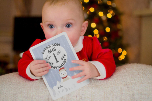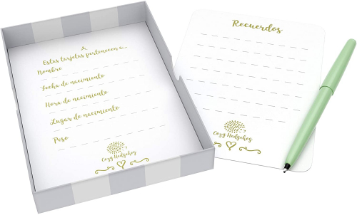 Tarjetas de Etapas del Bebé y Caja de Recuerdos - 40 Tarjetas de Fotos de Momentos Especiales Unisex, el Regalo Ideal para la Futura Mamá (Español), con los Logros de Edades Claves y Embarazo - COZY HEDGEHOG