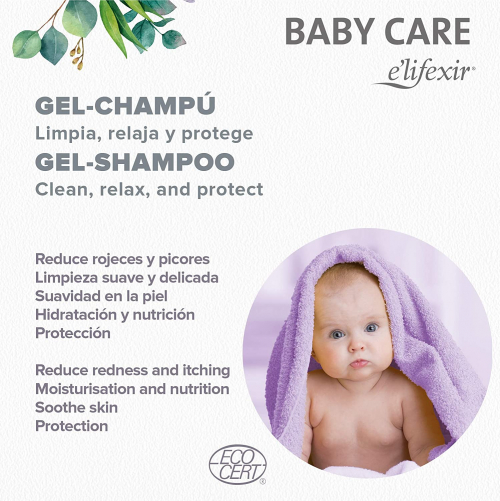 Baby Care - Morado, Gel Champú Dermatológico Hipoalergénico para Bebés, 500 Mililitros - E'LIFEXIR