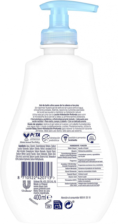 Gel de Baño De La Cabeza a Los Pies Hidratación Profunda 400ml - Baby Dove