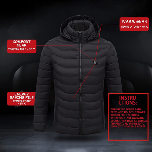 Chaqueta Calefactable con Capucha - Ropa Abrigada de Invierno con 3 Niveles de CalefaccióN,Puerto de Carga USB para Trabajo al Aire Libre Esquí Montar Motocicleta 4XL-4XLarge Red Four Districts - ZHYM