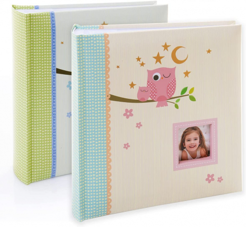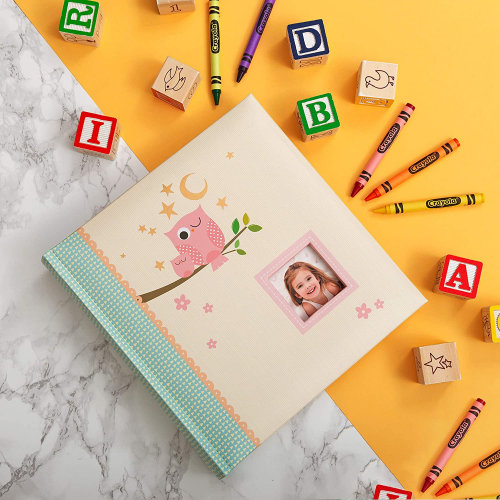 Álbum de fotos para niños - 200 fotos, personalizable, con una foto favorita para bebés y niños, color rosa, 10 x 15 cm, diseño de búho - Kusso