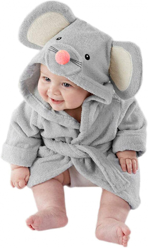 Toalla unisex para bebé con capucha - toalla de baño para niños pequeños con orejas para baño de bebé (gris, talla: S) pequeño Gris - Kisbeibi