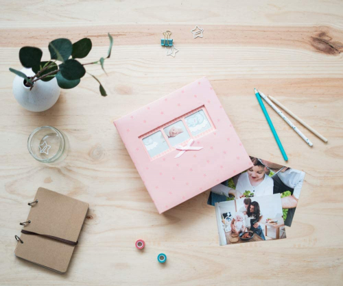 AF200101507 Álbum de Fotos Memo Estrellas Rosas - Baby Polka, 22,7 x 22,2 x 5 cm, Rosa - Grupo Erik
