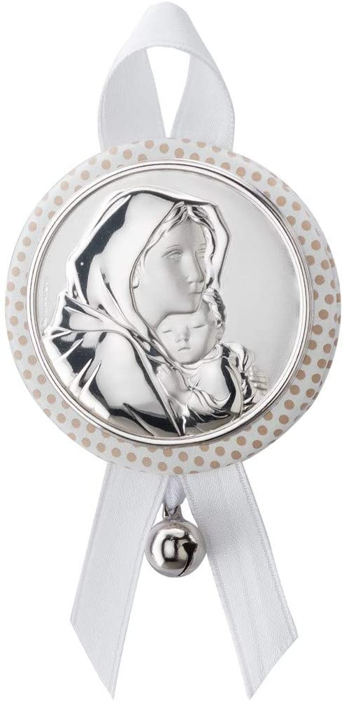 Regalos Más de Más - Medallón de cuna musical con Aplique Bilaminado en Plata de Ley 925‰. Disponible en color Azul - Blanco y Rosa. (Rosa) - Deam, S.A.