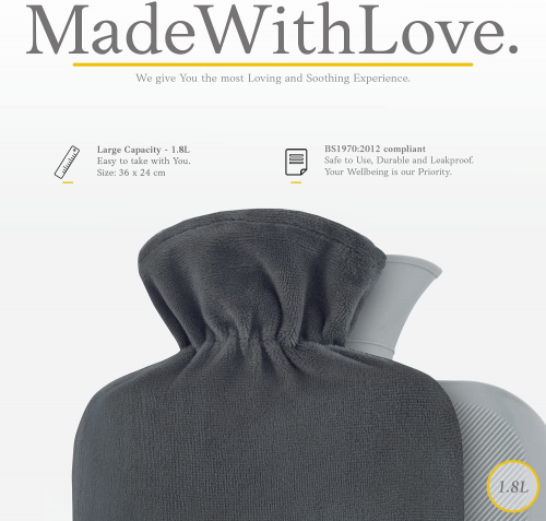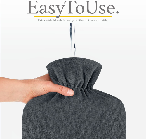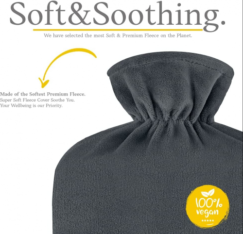 Bolsa de Agua Caliente con Funda - Funda de Vellón Premium Suave - 1.8L Gran Capacidad - Bolsa Agua Caliente para el alivio del dolor de espalda - cuello, hombros y para noches acogedoras - Gris Oscuro - Qomfor
