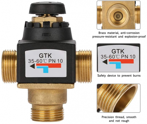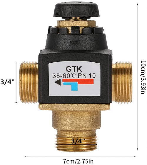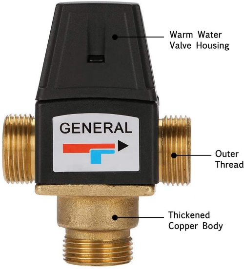 Válvula mezcladora termostática - válvula mezcladora termostática de latón con rosca macho de 3 vías DN20 G Temperatura del agua Tubería Cuenca Termostato para calentador de agua solar - Duokon