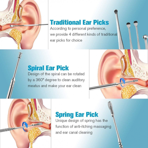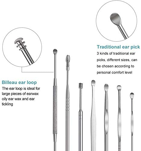 Limpiador de Oídos - para bebésb y jóvenes, Kit de limpieza para oídos, Ear Wax Removal, 8 Piezas Acero Inoxidable ear cleaner con Caja de Almacenamiento, Removedor de Cera de Oído - Gicrel