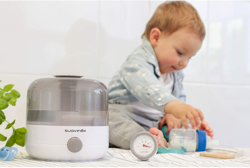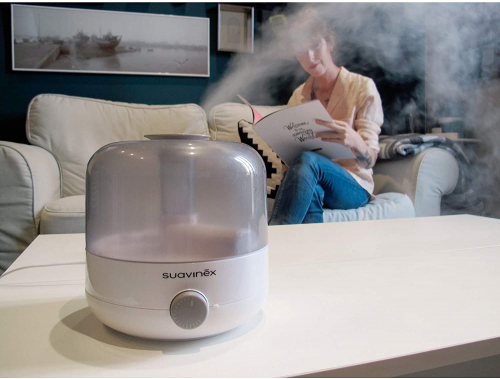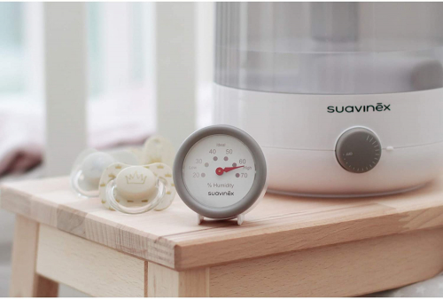 Suavinex 400804 Humidificador Silencioso de Vapor en Frío para Bebés con Preciso Higrómetro Tecnología Ultrasonido - Color Blanco/ Gris - SUAVINEX