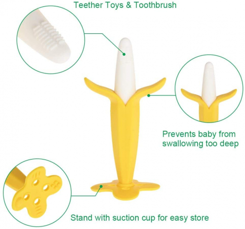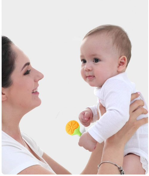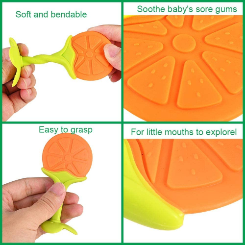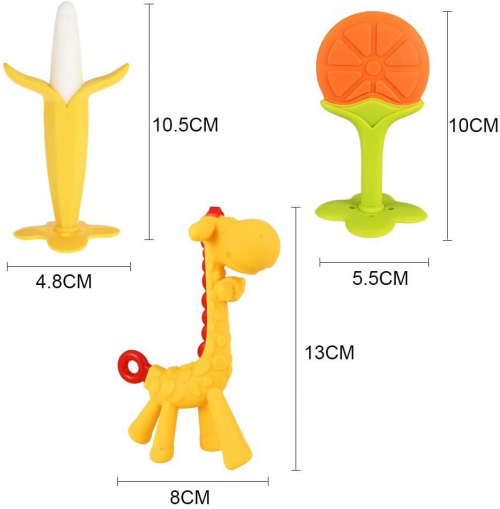 Mordedor para bebé - Mordedor de Fruta para la dentición para bebés,sin BPA Natural Organic Freezer Safe Silicone Teethers-Naranja * 1 + Plátano Blanco * 1 + Jirafa amarilla * 1 - GOLDGE