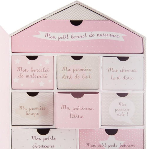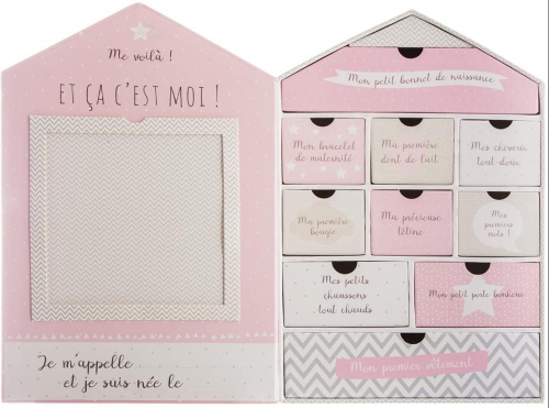 Caja de recuerdos de recién nacido + marco de fotos - Forma Casa - Color ROSA - Atmosphera
