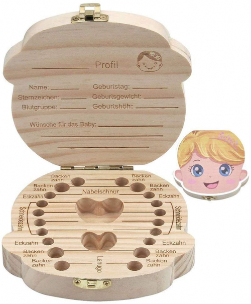 Caja De Dientes De Leche De Madera Organizador Para El Bebé,Colección de Dientes de Hoja Caduca Caja de Recuerdos Para Mantener la Memoria de la Infancia (Chica) Tesoro Femenino - Amasawa