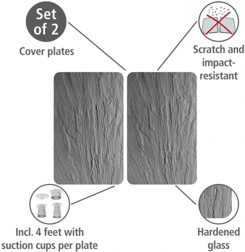 WENKO Placas cobertoras de vidrio universales Pizarra - juego de 2 piezas para todos los tipos de cocinas - Multicolor, 30 x 52 cm, Vidrio endurecido - Wenko