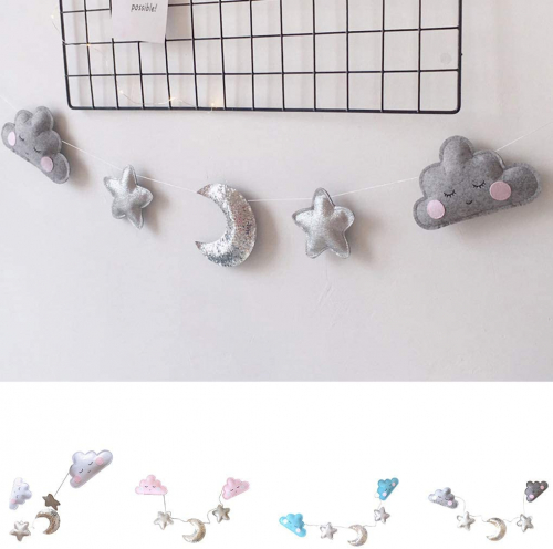 Felt nórdica Ducha Cadena Nube Partido Garland Bandera bebé Sitio de los niños Colgantes decoración de la Pared Tent la Cama de bebé Ducha Bunting Ornamento Polvo - DANDANdianzi