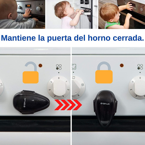 Cerraduras de seguridad a prueba de niños - Negro 1 A - Cerraduras, 2 x Bloqueo de Seguridad para horno, resistentes al calor, Negro, lavavajillas y microondas, 2x, adhesivo 3M, adecuado para lavadora, Diseño de doble botón - Your Day Mate