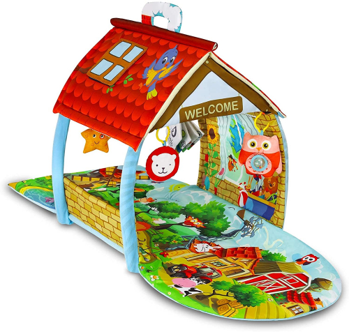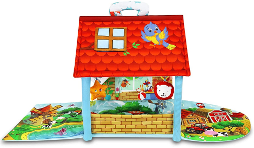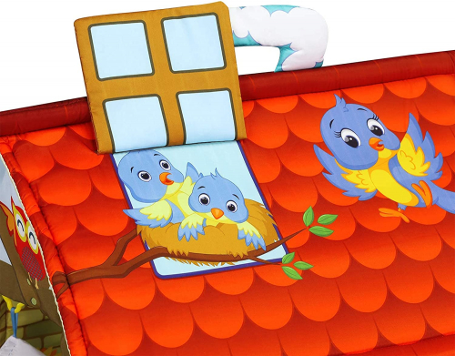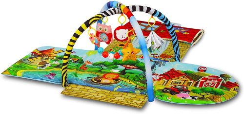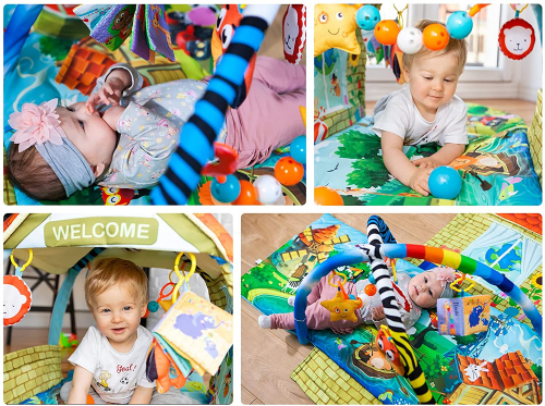 La alfombra infantil desarrolla la coordinación auditiva motora y visomotriz. El niño, al coger los juguetes, fortalece los músculos y mejora la capacidad de mantener la cabeza en cierta posición.