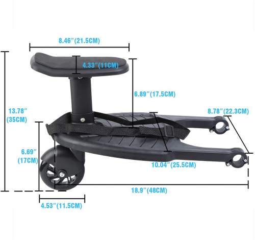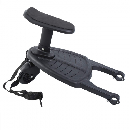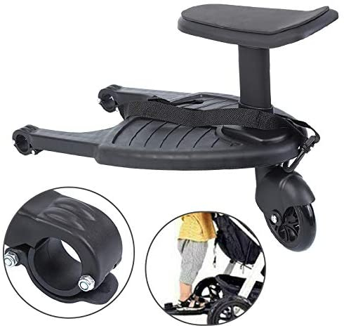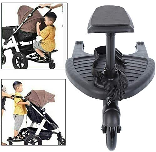 Mini Buggy Board con asiento Cochecito para el Segundo niño Pedal Auxiliar Conector extraíble Asiento y montaje (negro) Rueda negra - Honhill