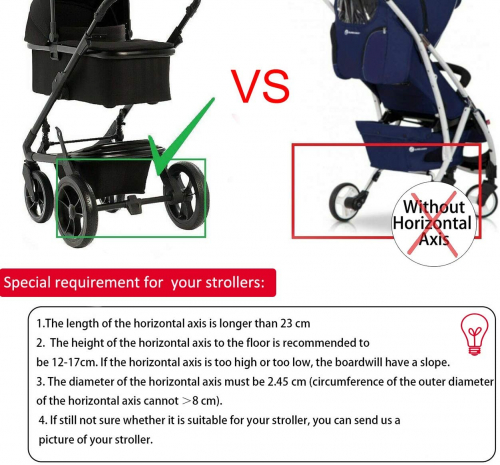 - Características adicionales: Para los cochecitos que tienen un eje horizontal en la rueda trasera, Para niños de 2 a 6 años usan, Capacidad de carga máxima de 25 kg