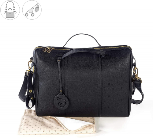 Pasito a Pasito. Bolsa para Carro de Bebé London. Bolsa Canastilla de polipiel con Cambiador. Práctica - elegante y espaciosa para llevar lo necesario en el paseo. Color Negro. Medidas 38x28x16 cm. - Pasito a Pasito