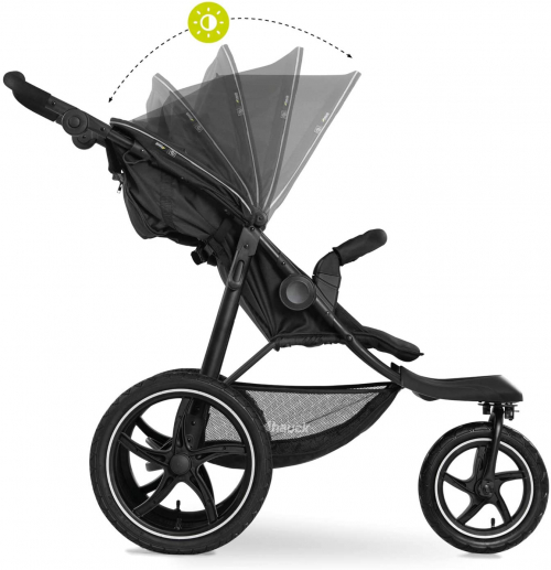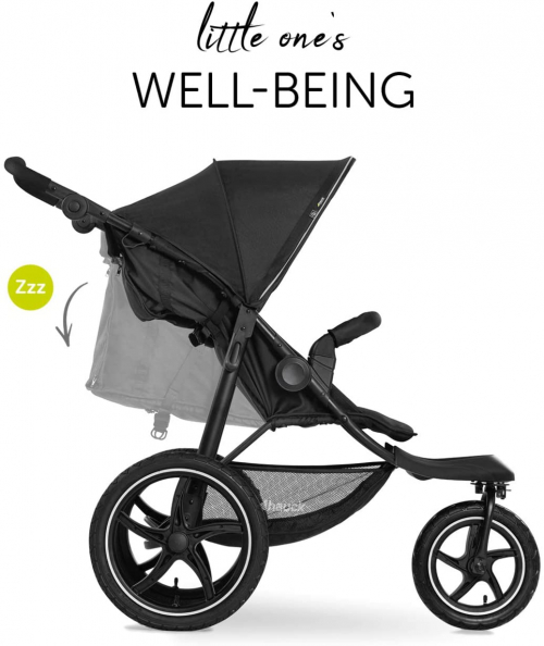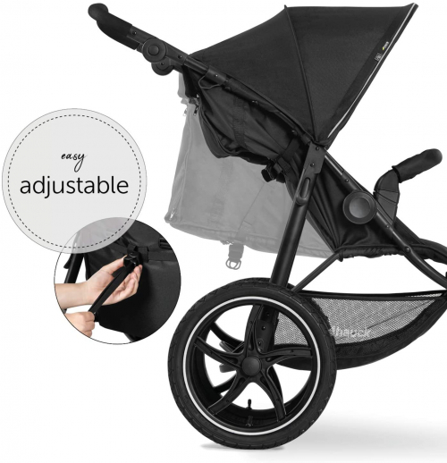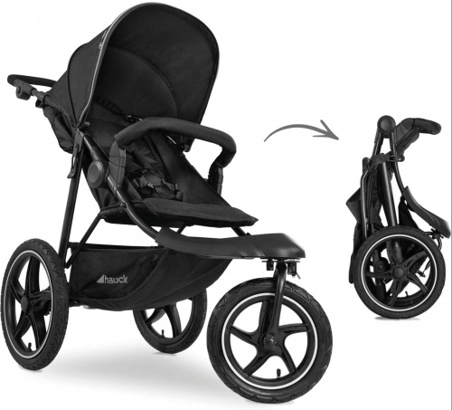 Silla 3 Ruedas Runner 2 de Hasta 25 Kg - Upf 50+, Negro, Respaldo Reclinable Desde El Nacimiento, Plegado Compacto, Grandes Ruedas Neumáticas para Todos los Terrenos, Manillar Ajustable en Altura - Hauck