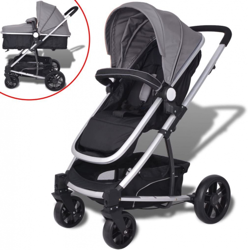 Festnight- Cochecito de Bebé de Aluminio Sillas de Paseo 97 x 49 x 101 cm Gris y Negro - Festnight